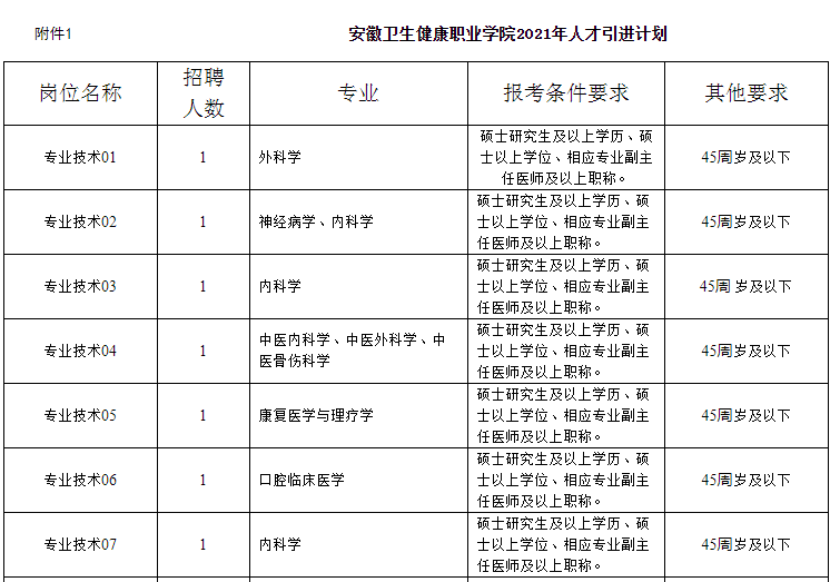 附件:1.安徽卫生健康职业学院2021年人才引进计划