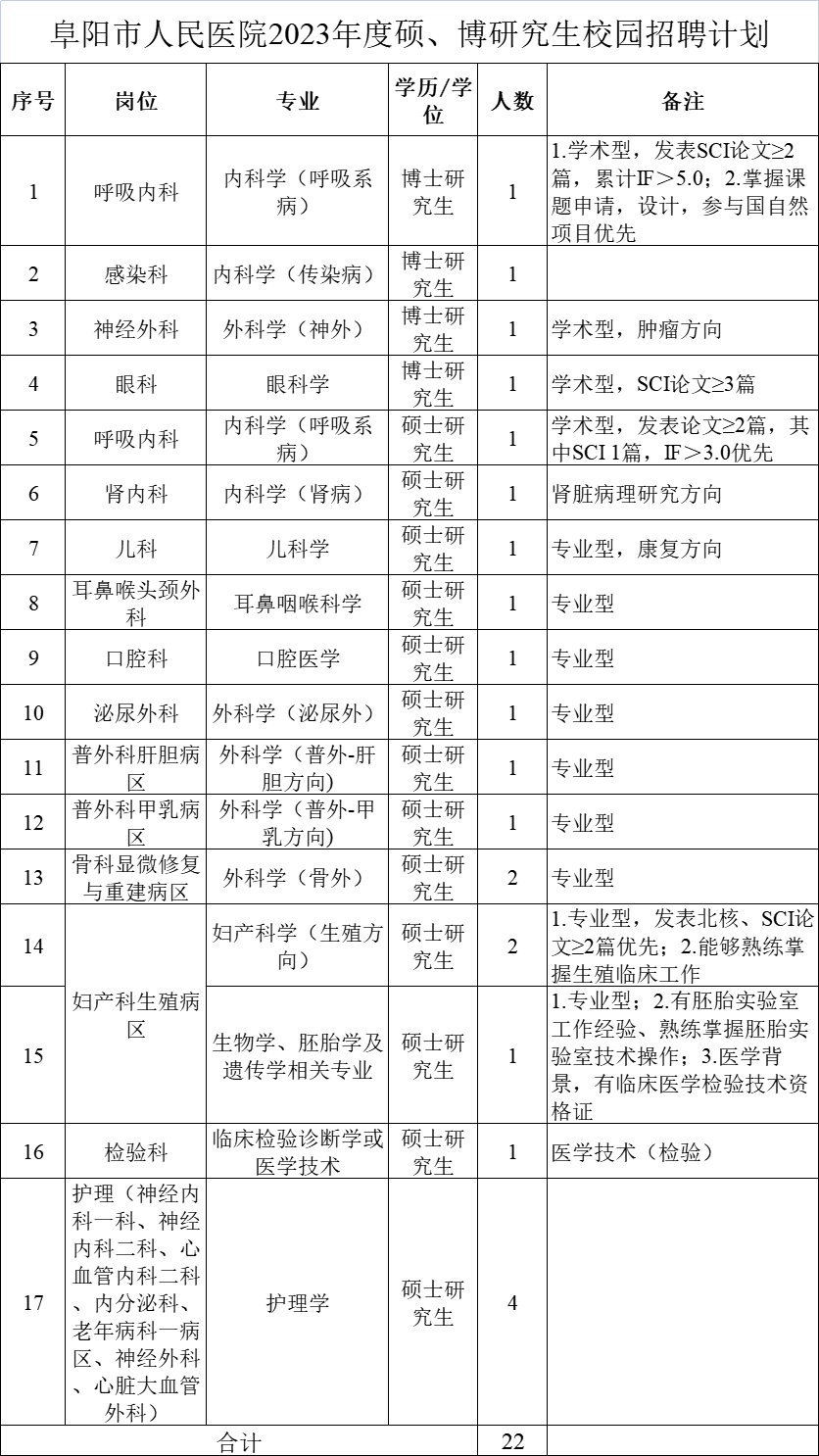 2.阜阳市人民医院2023年度硕、博研究生校园招聘计划